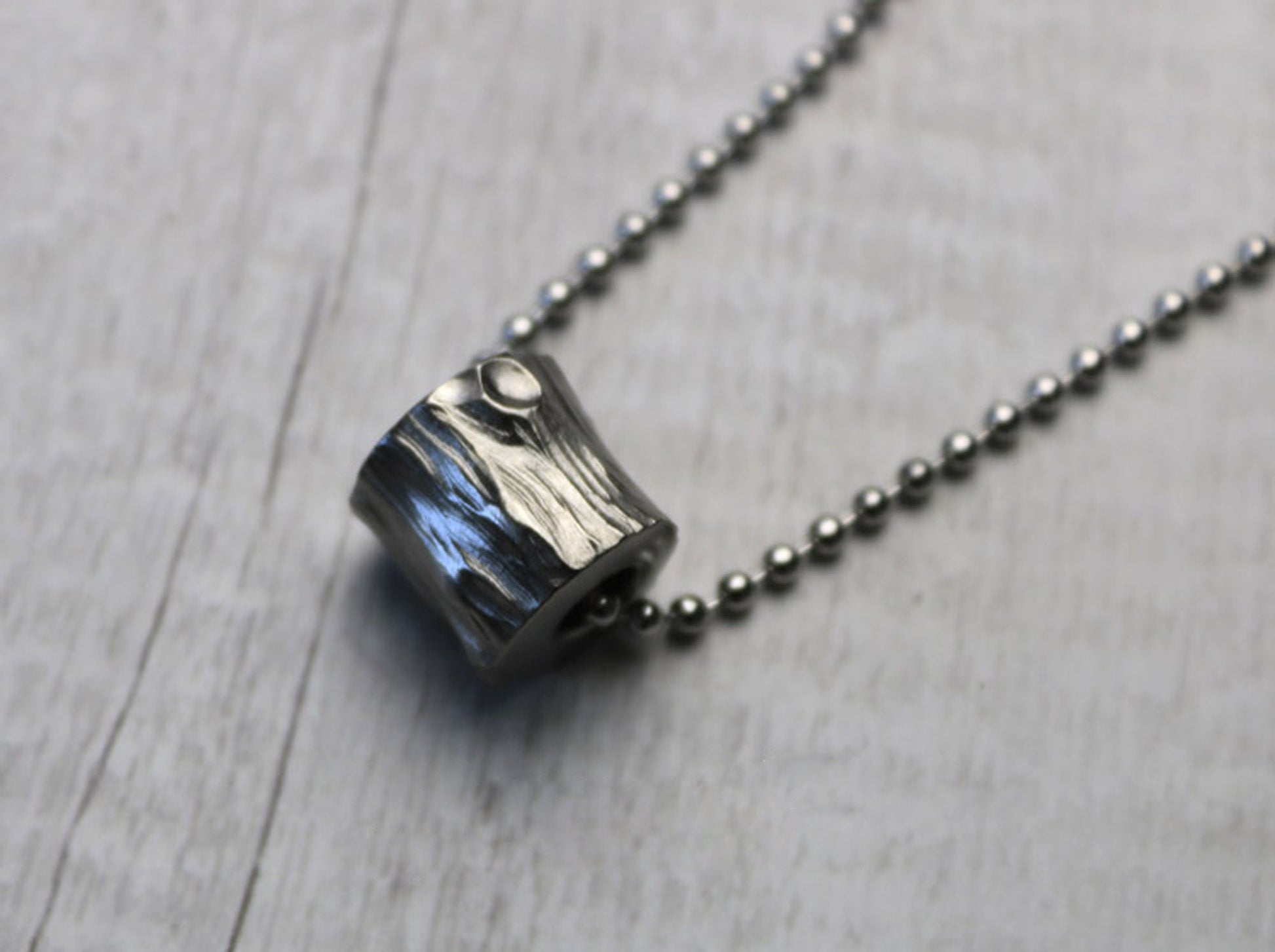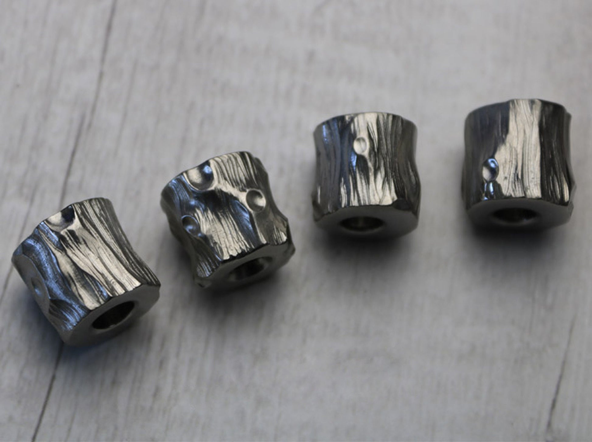 The pits on the wood surface are hand engraved to make it looks like a pieces of real wood pile. It is very detailed. The bead is engraved one by one.