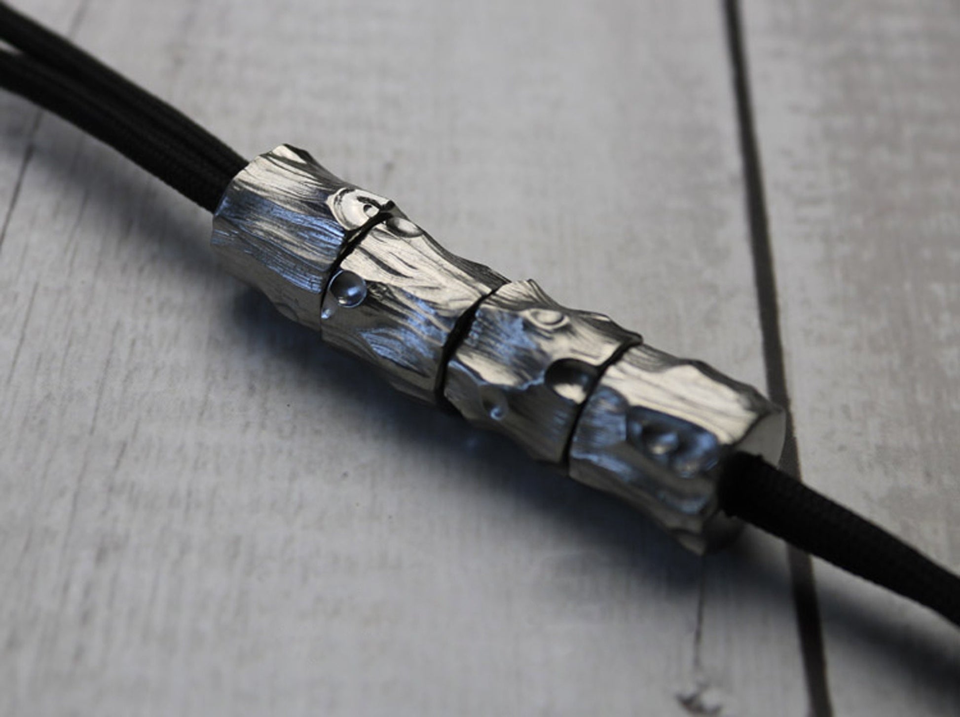 Hand Engraved Wood Pile Titanium lanyardbead-knife bead-EDC-custom bead-gift for men-bracelet bead bracelet of paracord necklace pendant