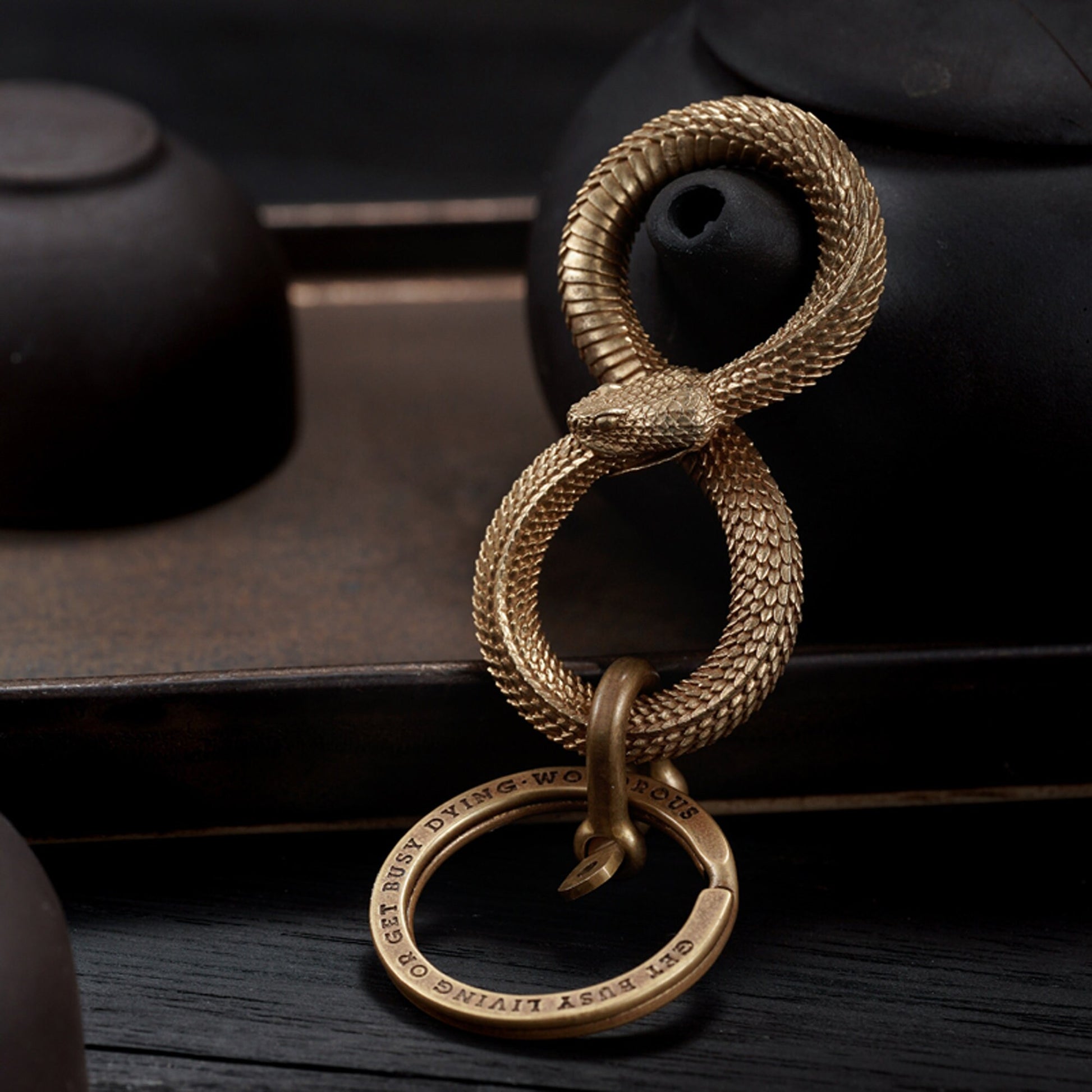 Infinity Snake key ring Rattlesnake key chain Ouroboros Solid Brass Key ring EDC charm Gothic and punk accessory Father gift, man gift