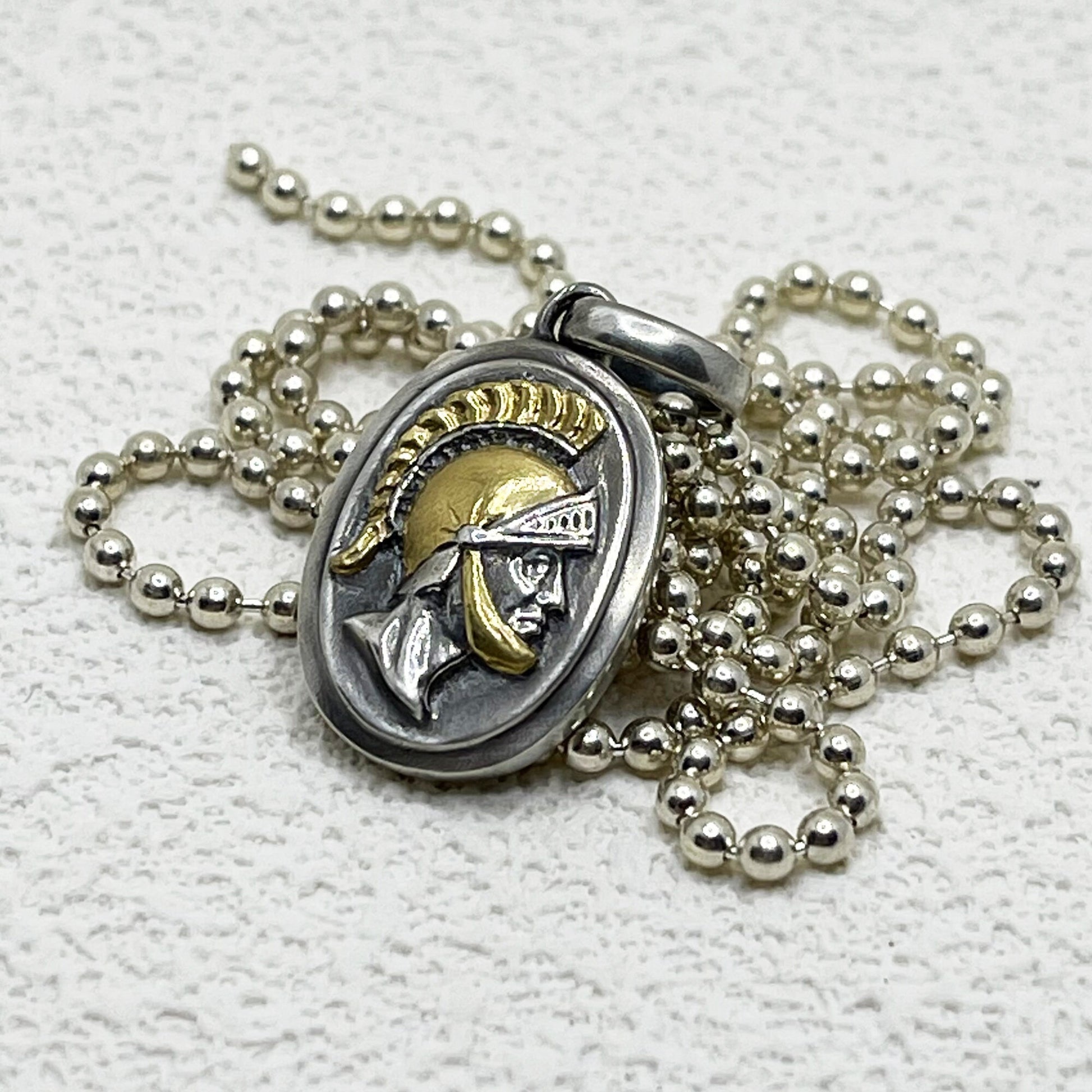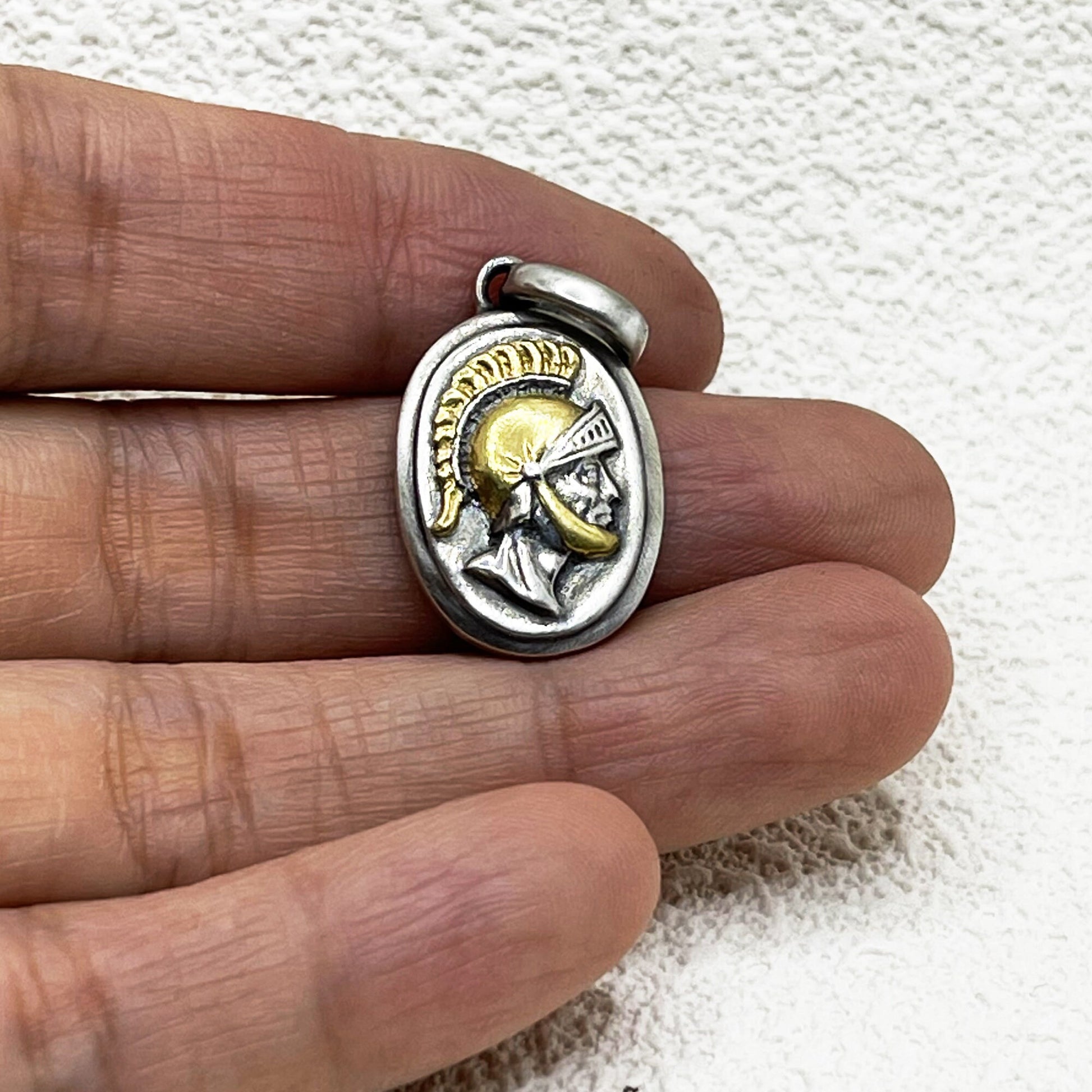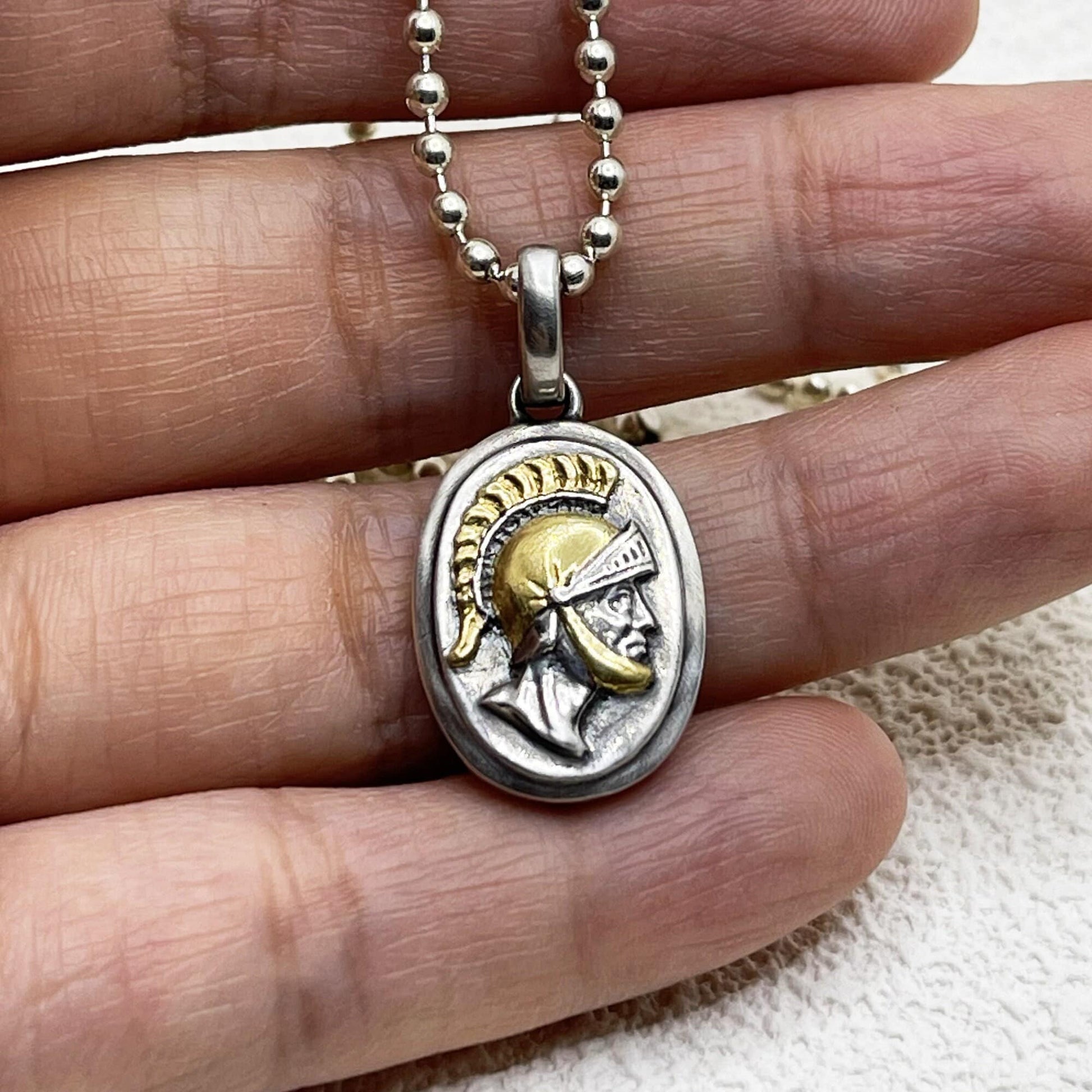 Silver Spartan Pedant necklace for girl or boy Handmade S925 Solid Sterling Silver 24K gold inlay wedding gift women Jewelry