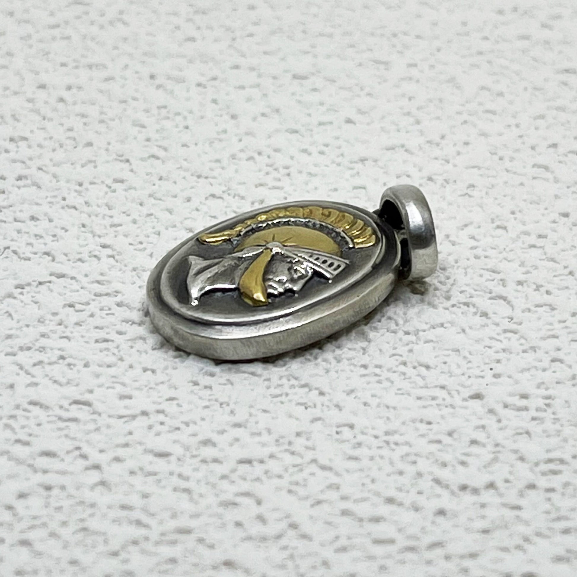 It is a Spartan pedant. The 24K inlaid helmet make the pedant outstanding. Please aware the size. It is a pretty small pedant.